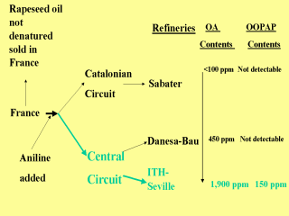 routes and distribution chains of the fraudulent rapeseed oils denatured with 2% aniline,