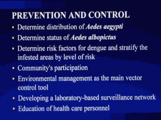 * Emphasizing environmental management as the main vector control tool. The prudent use of insecticides should only be undertaken when physical methods are impractical and biological control methods should only be pursued if appropriate. The prudent use of insecticide should include both space spraying for rapid/temporary reduction of infected adult mosquitoes and source reduction for permanent control, plus monitoring vector susceptibility to the insecticides to be used during these periods.