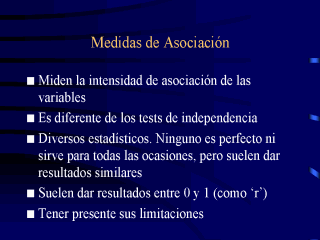 de la asociación entre variables. Solo determinan si están asociadas o son