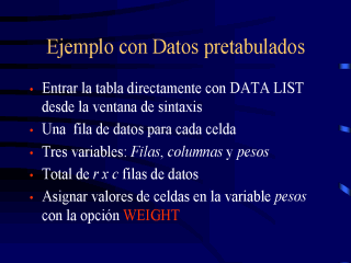 de datos. Para una tabla de 3 x 5 harían falta 15 filas de datos, una para cada