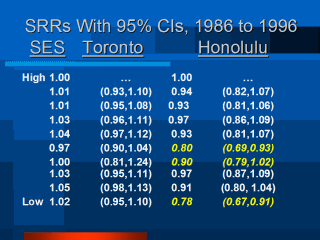 Note that these are findings across more extreme income deciles. The Honolulu gradient across tertiles was similar, though as hypothesized, attenuated compared with the Detroit gradient.. |