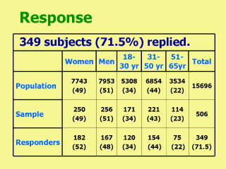 Demographic characteristics of the responders were very similar to those of the study sample and of the eligible population.