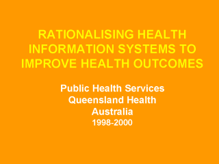 in various public health settings. Examples presented are based on real life experiences in the State of Queensland, Northern Australia.