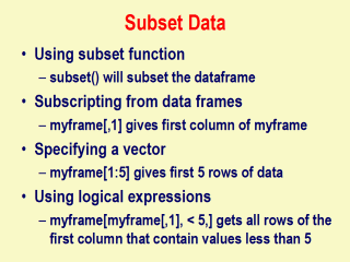 Use ?subset in an R session to learn more about how to subset data.