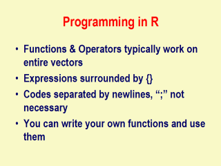 In terms of programming in R, R itself comes with a rich set of pre-built