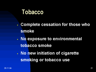 | Support Cessation programs. Adolescents are very easily addicted to tobacco and may need help stopping. |