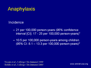 the Mayo Clinic identified the onset of anaphylaxis in 21 per 100,000