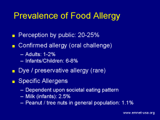 percent of adults and 6 to 8 percent of children have food allergy. Adverse