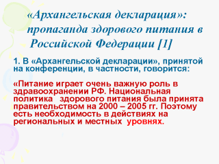 - обучение широких слоев общественности принципам здорового питания;