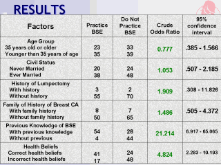 Table 3. Crude Odds Ratio and 95% Confidence Interval for BSE Practice and Study Variables (n=130)