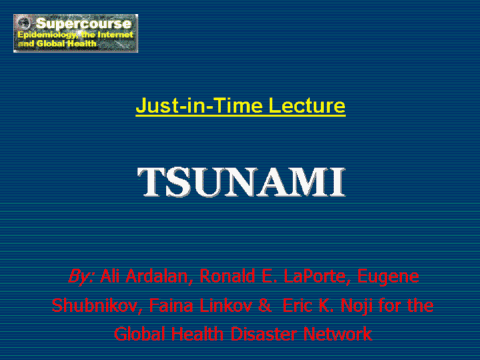 Tsunami. Please send the messages to aardalan@gmail.com . It would be great to have you involved. Authors: Ali Ardalan, MD, MPH, PH.D. student of Epidemiology Department of Epidemiology & Biostatistics School of Public Health & Institute of Public Health Research Tehran University of Medical Sciences Iran Ronald E. LaPorte, Ph.D. Director, Disease Monitoring and Telecommunications, WHO Collaborating