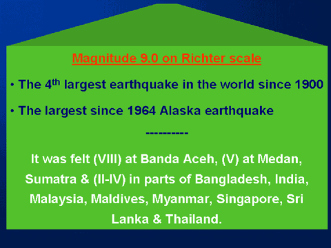 Source: http://www.drgeorgepc.com/Tsunami2004Indonesia.html http://earthquake.usgs.gov/eqinthenews/2004/usslav/ Useful link: Public Health Consequences of Earthquakes. Part I. http://www.pitt.edu/~super1/lecture/lec13021/index.htm Public Health Consequences of Earthquakes. Part II. http://www.pitt.edu/~super1/lecture/lec13051/index.htm |