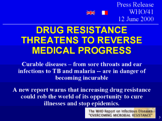 Why the concern about antibiotic resistance? Because curable diseases are in danger of becoming incurable because of increasing drug resistance. |