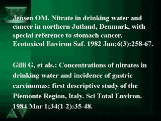 en agua de beber y el cáncer de estómago. Gilli y cols. publicaron un primer estudio descriptivo de la incidencia de cáncer de estómago y las concentraciones de nitrito en agua de beber en la región del Piamonte.