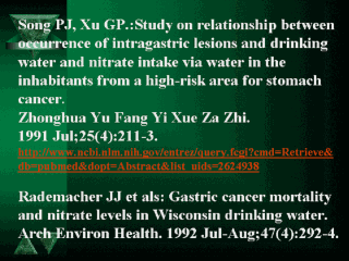ingeridos por esta vía. En cambio, los resultados de Rademacher no indican que los incrementos de niveles de nitrito en agua de beber hayan estado relacionados con la mortalidad por cáncer gástrico en Winsconsin.