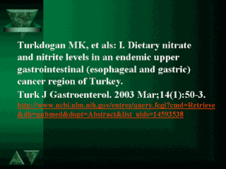 Turkdogan y su equipo demostraron una relación establecida entre los niveles de nitrato y nitrito dietarios y la prevalencia endémica de cáncer gastroesofágico en la región del lago Van, en Turquía. |