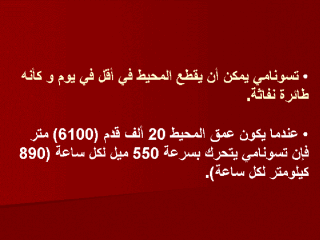 إذاً في المياه العميقة تسونامي يتحرك بسرعة كبيرة لمسافات كبيرة قاطعاً