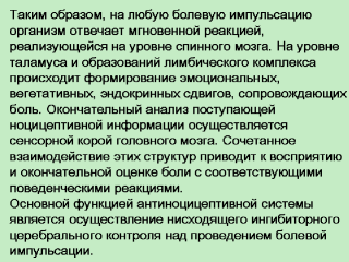 торможение передачи болевых стимулов с первичных афферентных волокон на