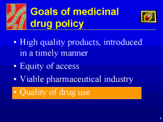 Before 1990 we had three goals of national drug policy. After 1990 we added a fourth goal: quality (appropriate / cost-effective) drug use. |