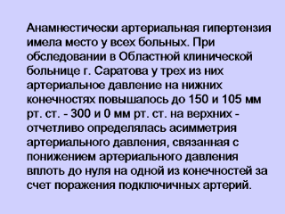 (измерялось артериальное давление только на одной конечности, где были
