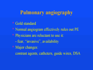 angiography is the reference method for the diagnosis or exclusion of PE. However, this is