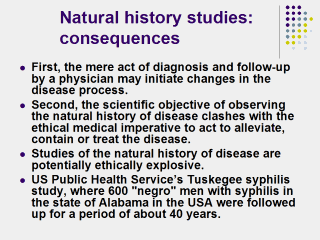 Follow up, or cohort, studies are needed to define the natural history of disease.