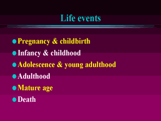 life events, for the purposes of this lecture, I will refer to some major stages in