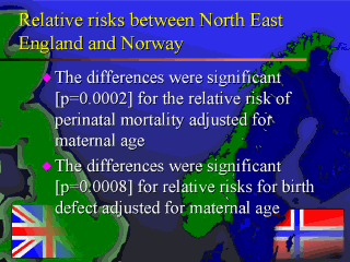 outcome of diabetic pregnancy between north east England and Norway. The risk difference