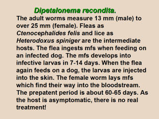 man. The female is about 12.0 x 0.5-1.0 cm. The vectors are mosquitoes. See