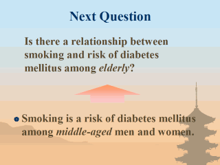 Smoking is a risk of diabetes mellitus among middle-aged men and women. Our next question is a relationship between smoking and risk of diabetes mellitus among elderly.