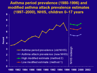 the asthma attack prevalence from the redesigned NHIS from 1997 to 2000. In
