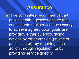 | I am including two sections on assurances. This first section demonstrates the concept of government acting either by encouraging actions by other entities or by providing the services directly. |