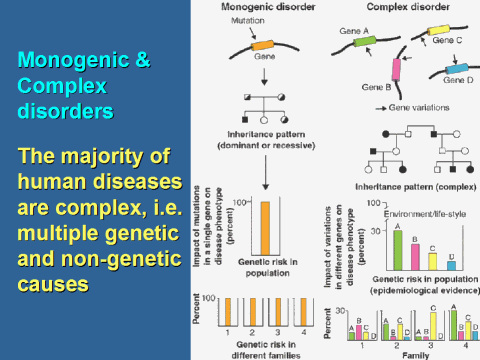 monogenic traits, complex traits have many contributing genes and