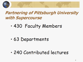 We have contacted many faculty at Pittsburgh University. A very large number want to collaborate with us. We already have received 240 lectures with many more pledged.
