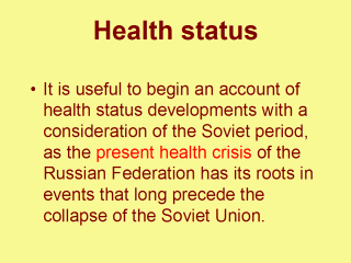 Lessof, S. In: Tragakes E., ed. Health care systems in transition: Russian
