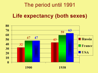 expectancy was 43 years in Russia, while in France it had reached 59 years