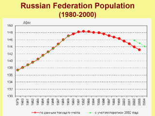 Russian Federation population, estimated at 144.8 million in 2000 has