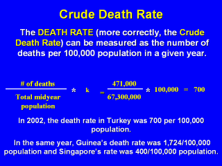 | Where the population serves as the denominator for annualized mortality or morbidity rates, the midyear population serves as the best approximation of the population-at-risk for the event represented in the rate numerator, such as death by any cause. This makes allowance for changes in population due to births, deaths, or migration that occur over the year for which the measurement applies. |