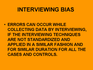 comparison and the validity of design will suffer. Questionnaire should be easy to apply with simple, open-ended questions and without any leading questions and applied to all the cases and controls alike. |