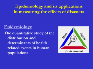 | The fundamental axiom of epidemiology is that adverse health outcomes do not occur randomly within a population but occur in somewhat predictable patterns. Such patterns may be manifested as clusters of disease, injuries, or other health outcomes in time, space, or certain groups of people. |