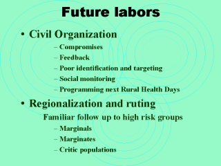 | A relevant component of this process is the change of status of the support committee to a Civil Organization, self sustainable and its routing activities to protect and give service to poor populations. |