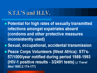 STIs have been observed in on study of Peace Corps Volunteers in West Africa.
