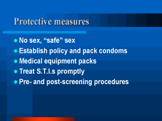 | The standard measures to protect against STIs should be enlisted. |
