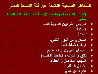 و الكرب ( الضغط النفسية) ، التهاب المفاصل ، تخلخل العظام ، الام اسفل