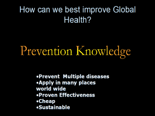 | We would argue that the Internet and Prevention Education is the pathway towards improved global health. A system like this has all the characteristics needed to improve health in that it attacks multiple diseases, it is wide spread, it is powerfully effective, it is inexpensive and sustainable. |
