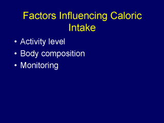Activity Level: Look at activity level of the child. Ex: Child with spastic quadriplegia needs more calories, as they move more.