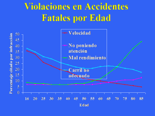 velocidad y tomar carriles incorrectos. Conductores de edad
