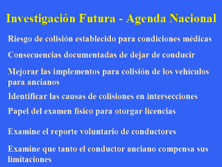 para los condutores ancianos. La agenda nacional de la