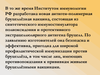 | В сравнении с известными вакцинами, антиген-полимерная вакцина не индуцирует гиперчувствительность замедленного и немедленного типов, обладает высокой специфической активностью. Вакцина запатентована в РФ, разработана полупромышленная технология получения вакцины и методы контроля ее эффективности. Подготовлена научно-техническая документация для получения разрешения на проведение клинических испытаний. |
