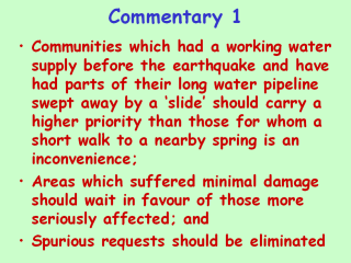 | Experience shows that in this area, people will often try to attract attention to their ‘plight’ as a means of diverting resources to their benefit irrespective of the wider needs of their community. |
